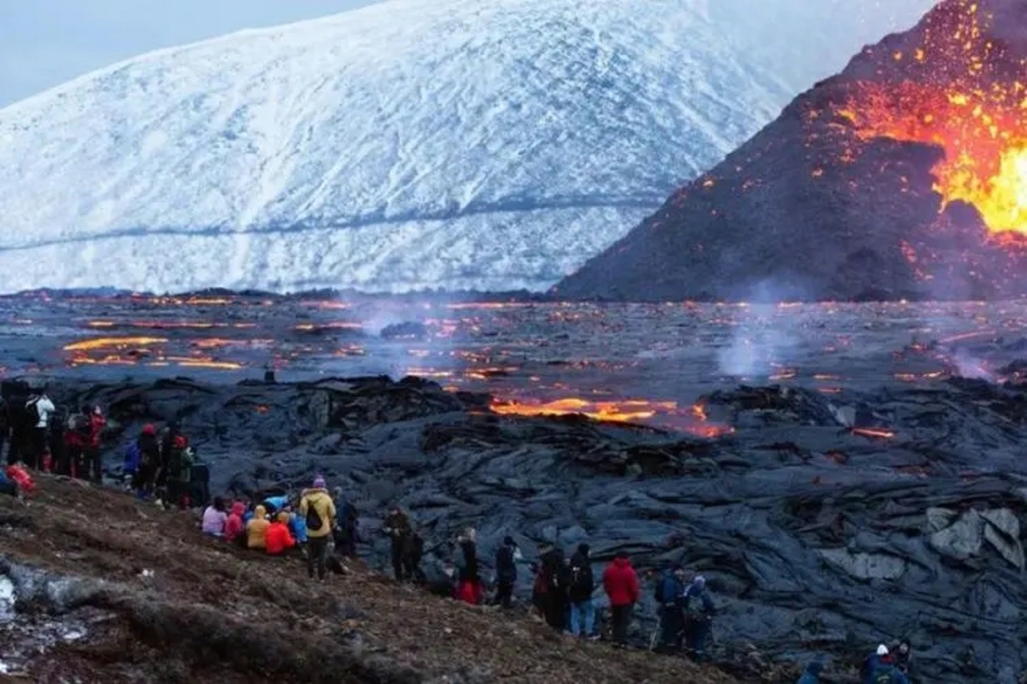 法格拉达尔火山本月3日开始喷发,火山口持续喷出橙红色岩浆,最高可达70米。难得一见的壮观景象也吸引了大批游客不惜沿峡谷崎岖的山路徒步数小时,只为观赏这一奇观。冰岛旅游部门表示,仅11日当天就有4200名游客徒步来到这里,从安全距离观看火山喷发,而截至当天,一周多的时间里游客总数已达到约2.3万名。
