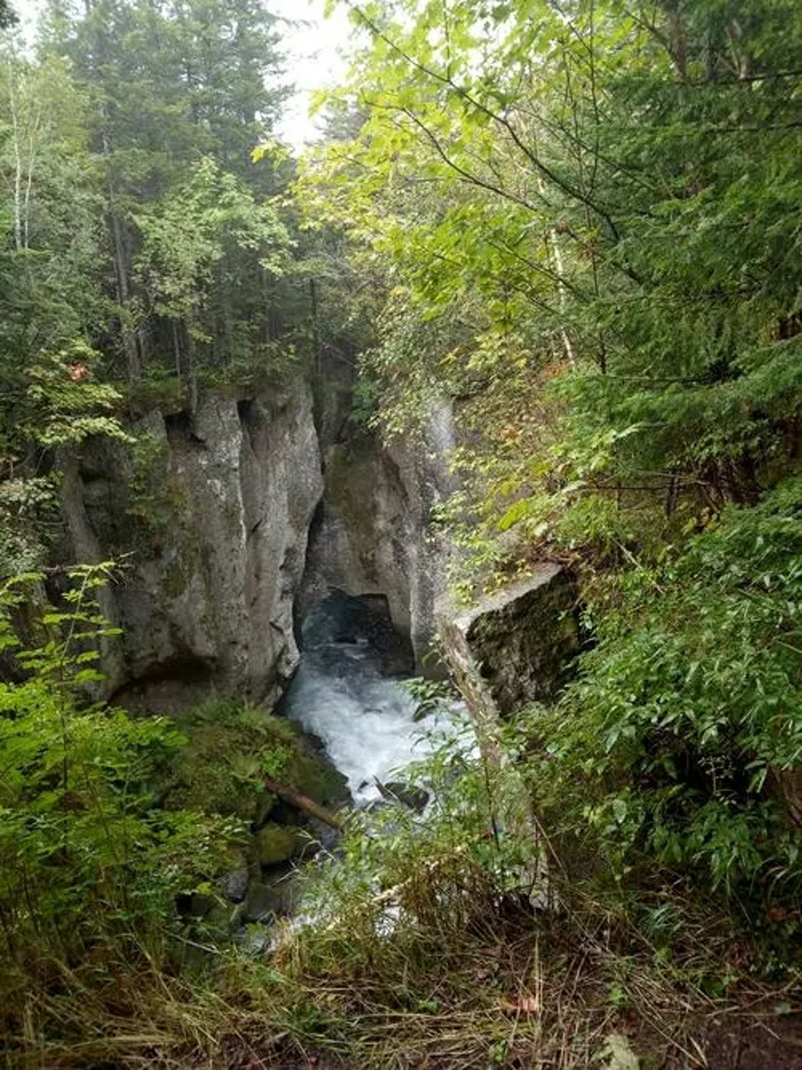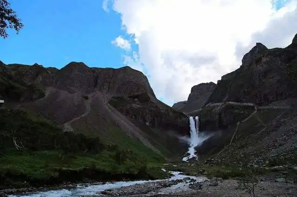 长白天池四周有十六座山峰,北侧有一缺口,宽约二三十米,古称闼门,天池水由此流出,穿过天豁峰与龙门峰之间,,倾泻而下,人们称之为"通天河",又称“乘槎河”,全长1250米,在其尽头形成高达68米的长白瀑布,是世界落差最大的火山湖瀑布,瀑布口有一巨石将瀑布分为两股。水花飞溅,雾气朦胧,声如雷鸣,气势宏大。